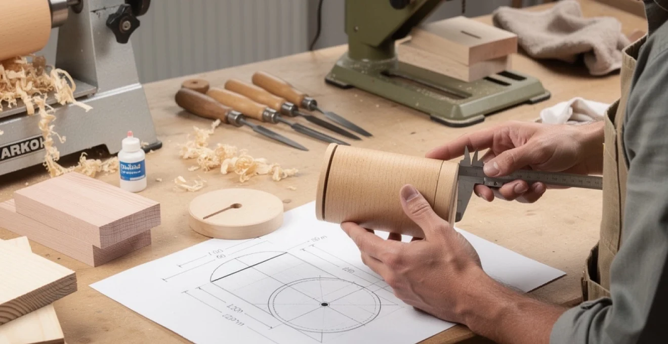 L’usinage se déroule en plusieurs temps : mise au rond du carrelet, dressage des faces, profilage du cylindre, puis réalisation des épaulements éventuels pour le logement du fond. L’utilisation de gouges de tournage bien affûtées est déterminante pour éviter les arrachements de fibres, surtout sur des bois durs comme le hêtre. Vous constatez rapidement que plus votre outil est affûté, moins vous avez à poncer ensuite : c’est un peu comme tailler un crayon avec un cutter bien affûté plutôt qu’avec une lame émoussée, le résultat est incomparable. N’oubliez pas de vérifier régulièrement l’alignement et le serrage de la pièce entre pointes pour garantir une concentricité parfaite.