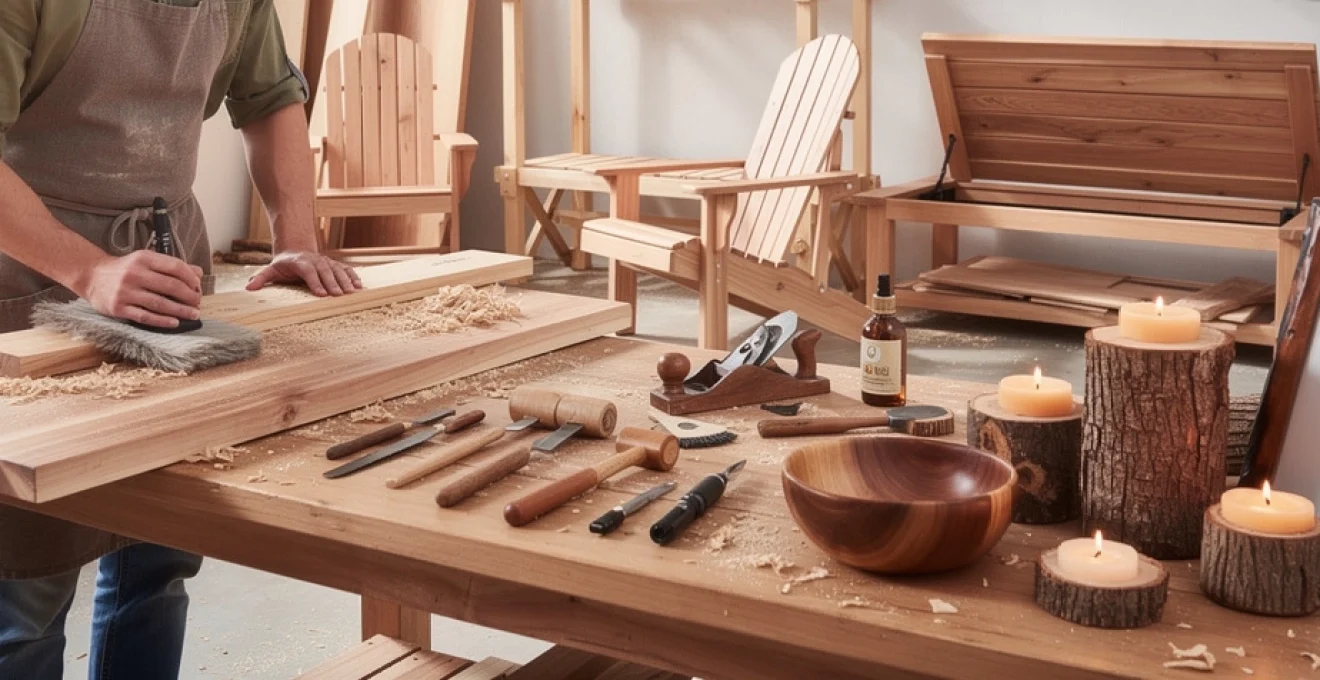 Au-delà des grands projets de menuiserie, le bois d’eucalyptus se prête aussi à la création d’objets décoratifs au caractère unique. Ses veines parfois ondulées, ses variations de couleur et son parfum discret en font un support de choix pour la sculpture, le tournage et les travaux de finition créative. Que vous travailliez sur de petites chutes ou sur des billes entières, vous pouvez transformer ce matériau en pièces d’art de table, accessoires de décoration murale ou objets du quotidien. L’eucalyptus offre ainsi un excellent terrain de jeu pour explorer des techniques comme le tournage, la pyrogravure ou l’inclusion en résine, sans nécessairement disposer d’un atelier complet.